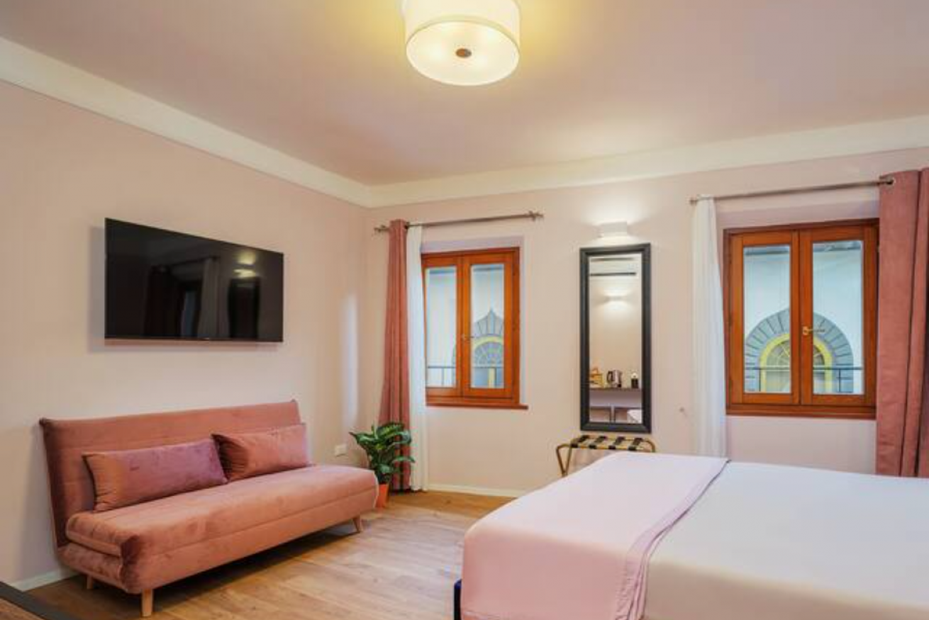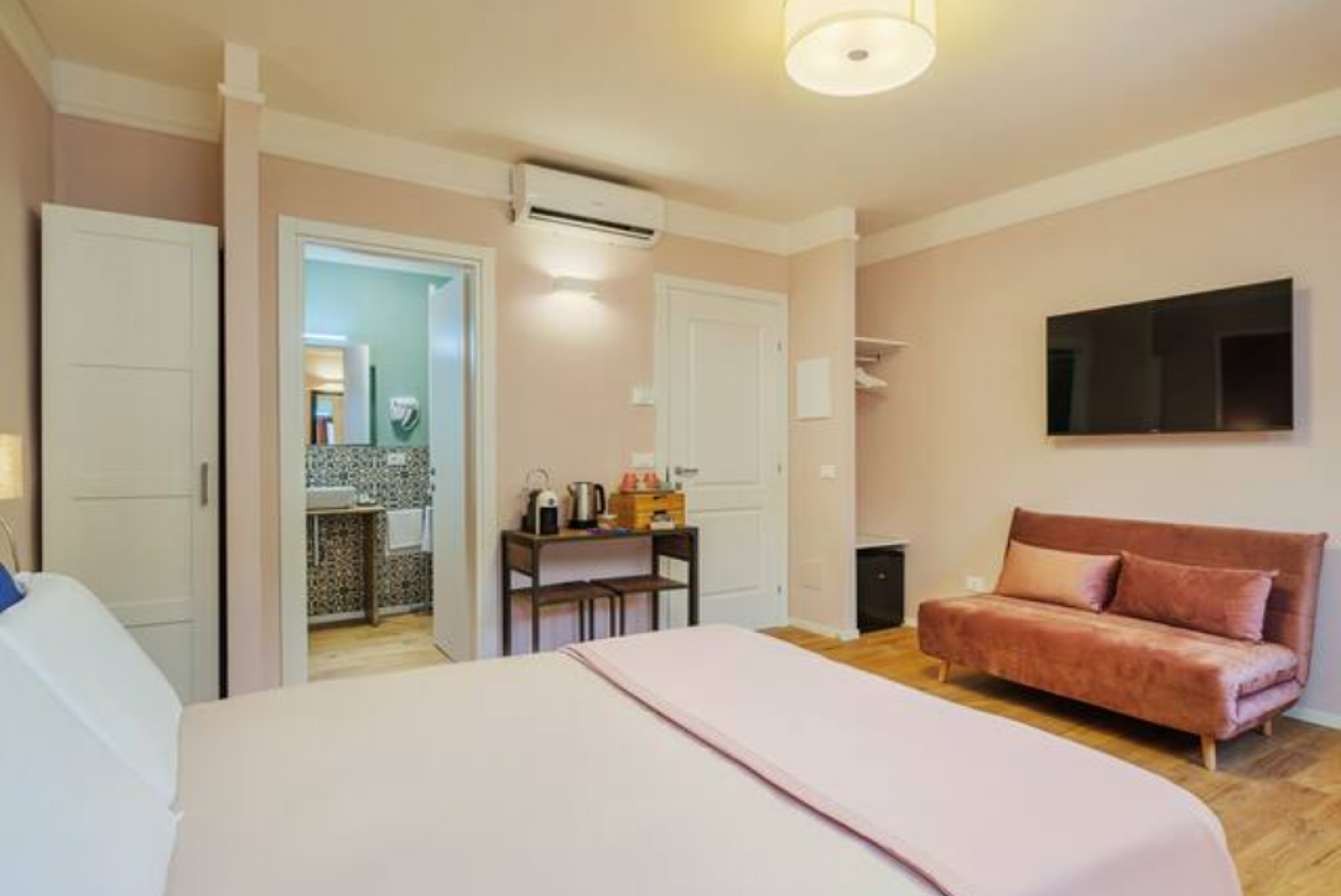 Antiboti 1, camera matrimoniale con divano letto alla francese con bagno privato in elegante Affittacamere appena ristrutturato, si trova in pieno centro storico. Le maggiori attrazioni turistiche e i migliori ristoranti e locali sono tutti raggiungibili a piedi.