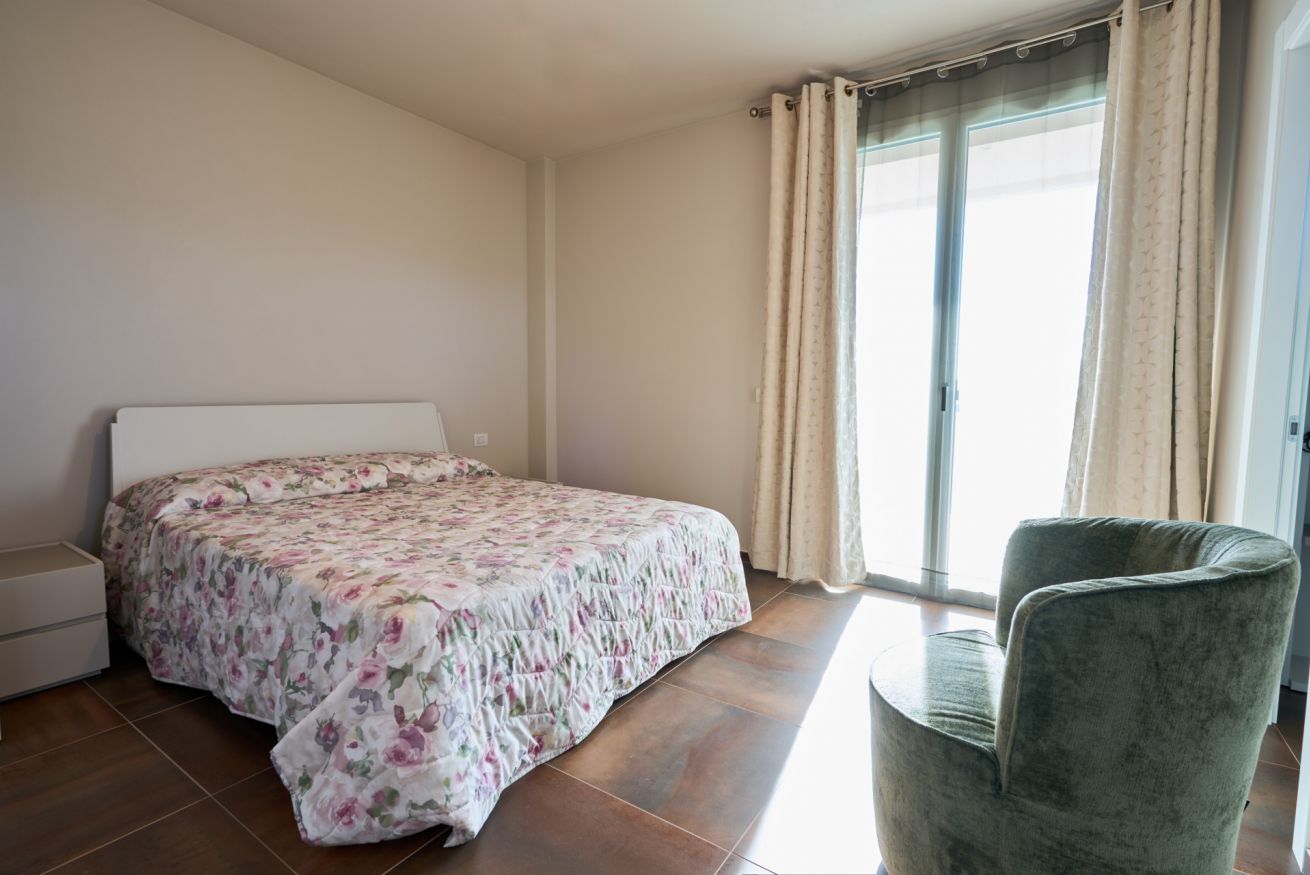 • una luminosa camera matrimoniale con terrazza vista piscina;