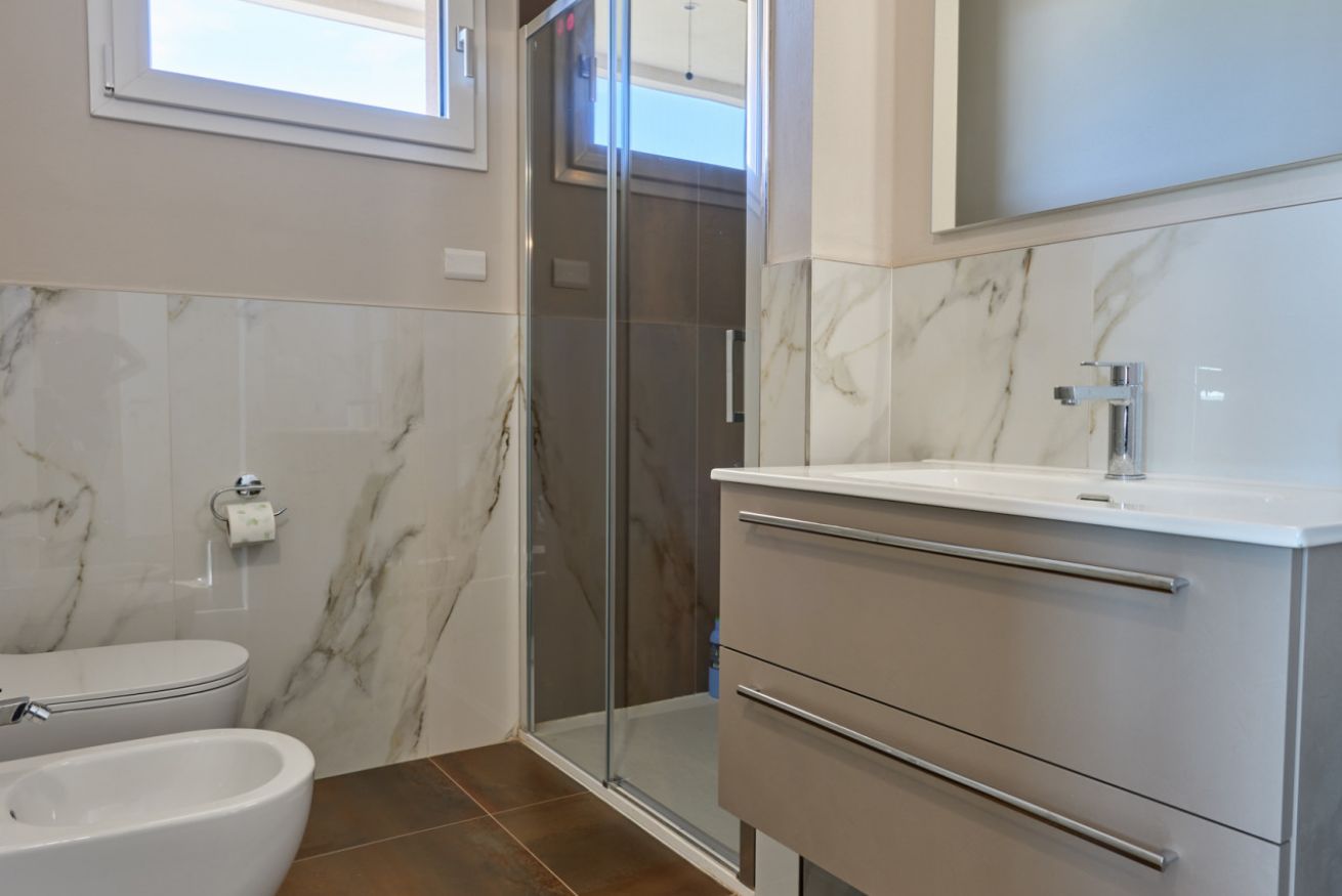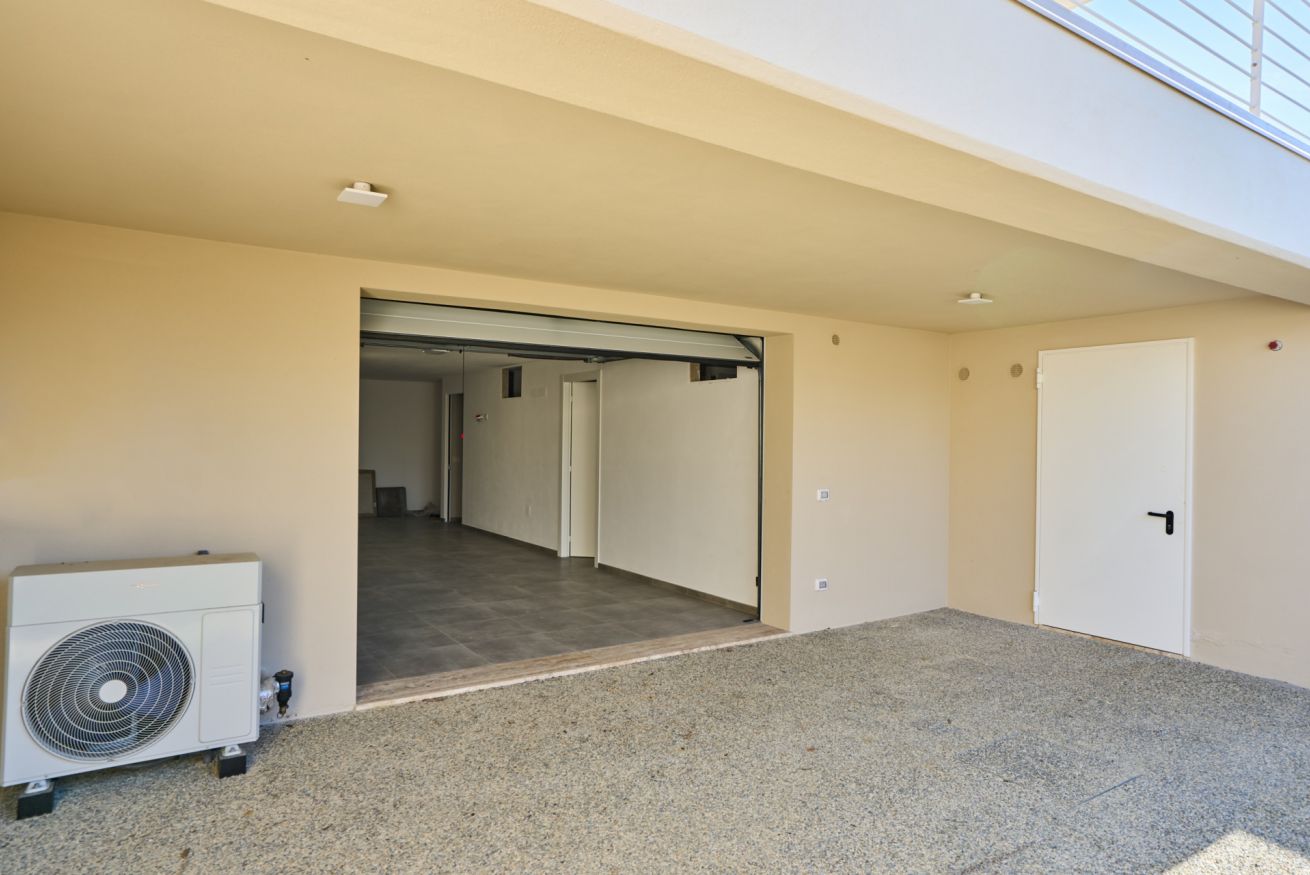 Al piano seminterrato si trovano un comodo garage privato, un bagno con doccia e spogliatoio dedicato alla piscina, completo di pratico frigo bar, oltre a una funzionale lavanderia. Gli ambienti sono collegati internamente alla casa per garantire la massima comodità.